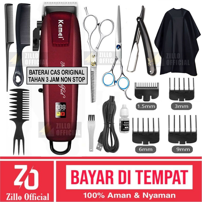 ZILLO Mesin Cukur Rambut Cas Barbershop KEMEI PG-2600 Indikator Baterai LCD Display ORIGINAL