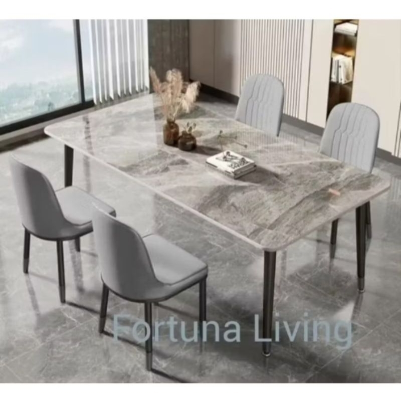 Promo Fortuna Living Meja Makan Set Marmer Premium Retro 4 Kursi Atau 6 Kursi