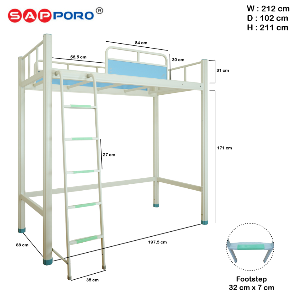 SAPPORO YARRA - Ranjang Apartemen Single Loft Bed Set | Loft Bed Single Set