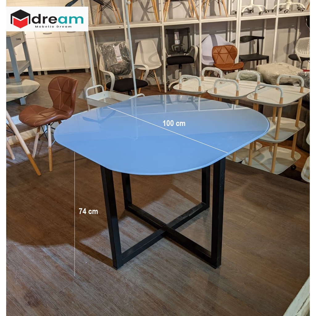 Meja Makan Dining Set Kaca Minimalis Box 4 Seater Kursi Bangku Abu Abu Grey - SX