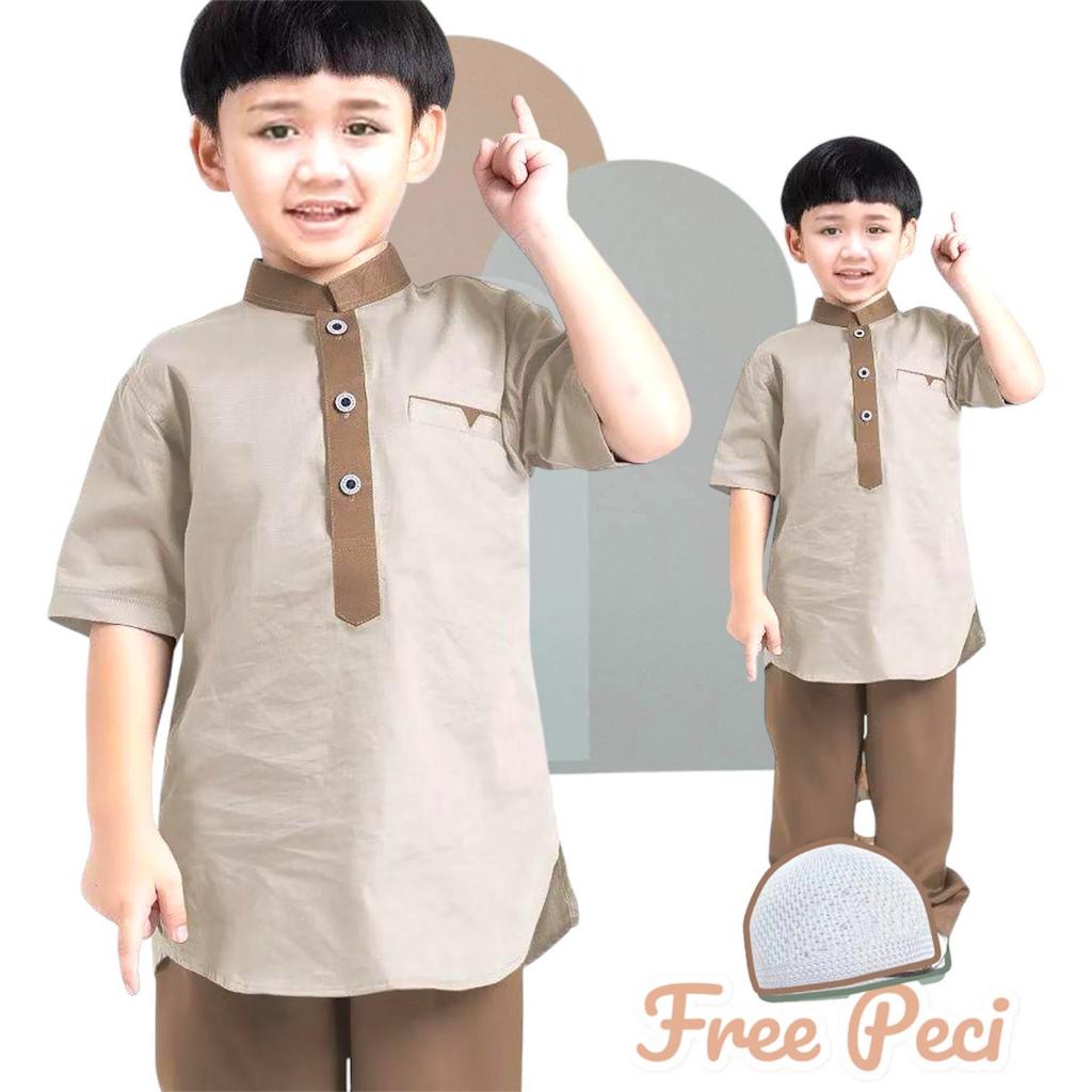 setelan baju muslim anak laki laki terbaru one set baju koko anak polos lengan pendek baju koko anak 1-12 tahun ba