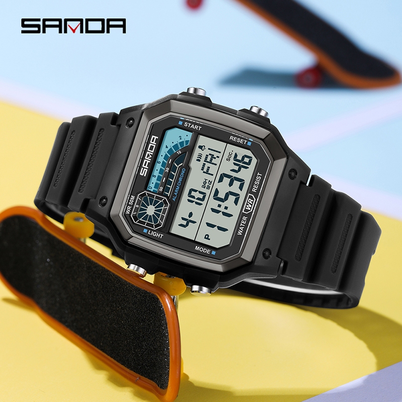 SANDA 6196 Jam Tangan Pria Digital Tali Rubber Chronograph Anti Air