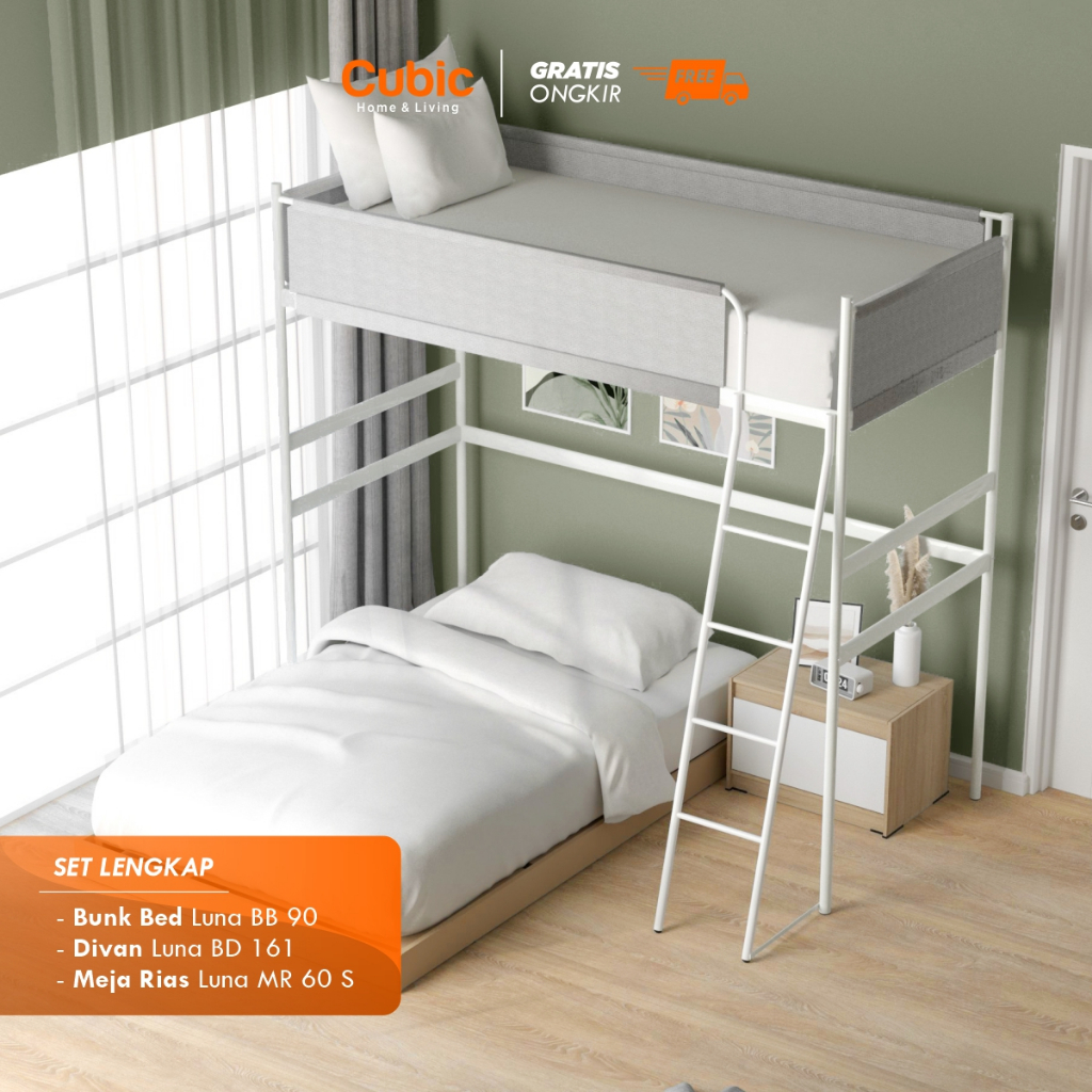 Cubic Set Kamar 2 / Ranjang Tingkat Besi + DIVAN + Nakas / LUNA BB 90