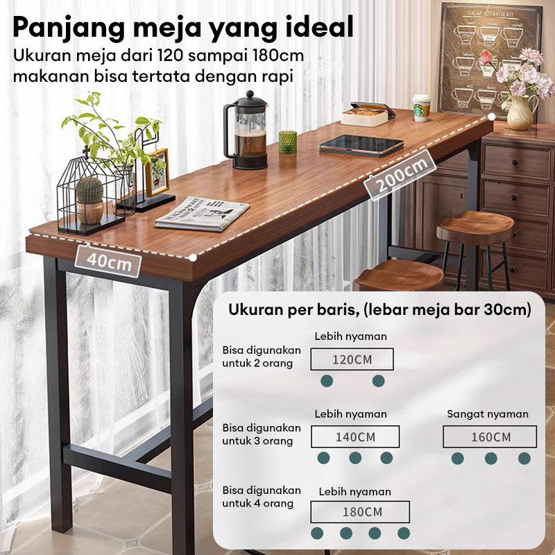 Meja Bar180CM Meja Cafe Besi Meja Kopi Teras Meja Barista Meja Panjang Meja Makan Minimalis