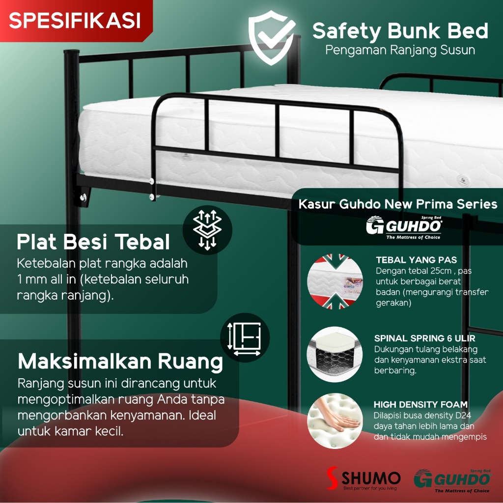 GUHDO SPRINGBED X SHUMO Ranjang Besi Tingkat Meja Belajar 90x200 Spring bed Full Set