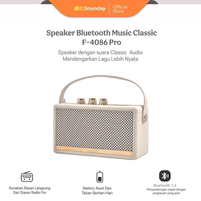 Speaker Bluetooth Music Classic Box F-4086 Music Mp3/Mp4 Radio Fm Power Full Double Stereo