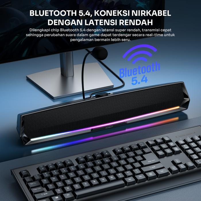 ROBOT Soundbar Speaker Komputer Gaming For PC Computer RS500 Bluetooth 5.4 Gaming Double Bass RGB