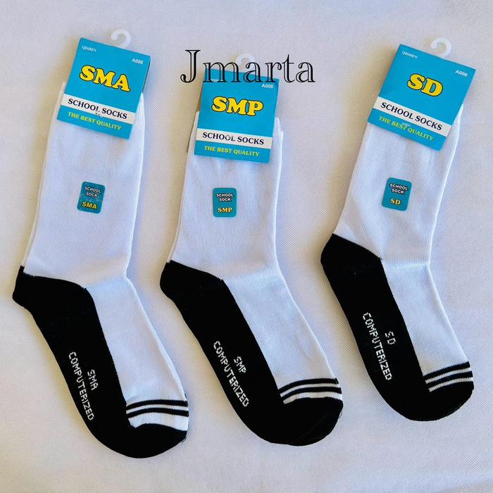 Kaoskaki 3pasang kaos kaki anak sekolah putih telapak hitam panjang sebetis lembut dan nyaman di