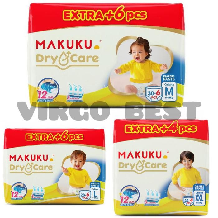 [2 BALL] MAKUKU DRY CARE NBS44 / M30+6 / L28+6 / XL24+4 / XXL22+4 Popok Bayi Tipe Perekat Celana