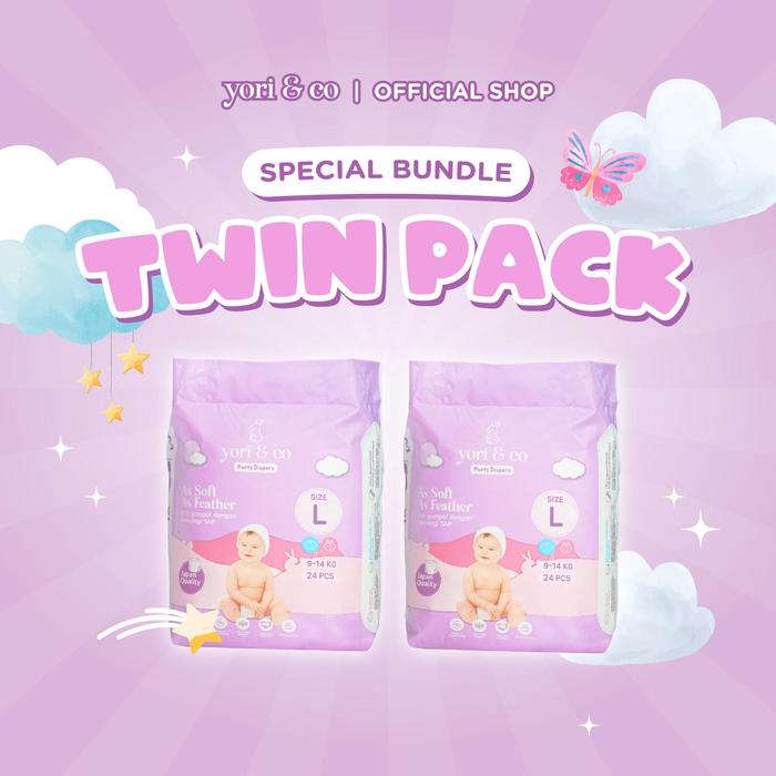 [TWINPACK] yoriandco Pants Diapers As Soft As Feather L 24 x2 Popok Bayi Celana