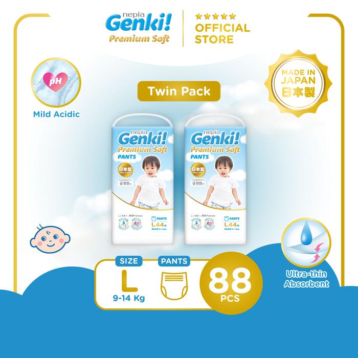 [2 Pack] Nepia Genki Jumbo Popok Bayi Pants Popok Celana Bayi Diapers Premium Soft [9-14 kg] Ukuran
