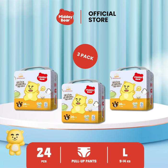 Midday Bear Holiday Popok Celana Bayi Pull-Up Pants Lembut,kering,Tipis L24*3Pcs