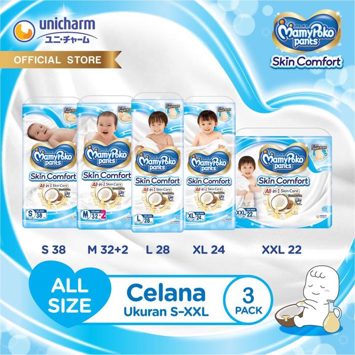 MamyPoko Pants Skin Comfort - All Size (S-XXL) - 3 Pack Super Jumbo