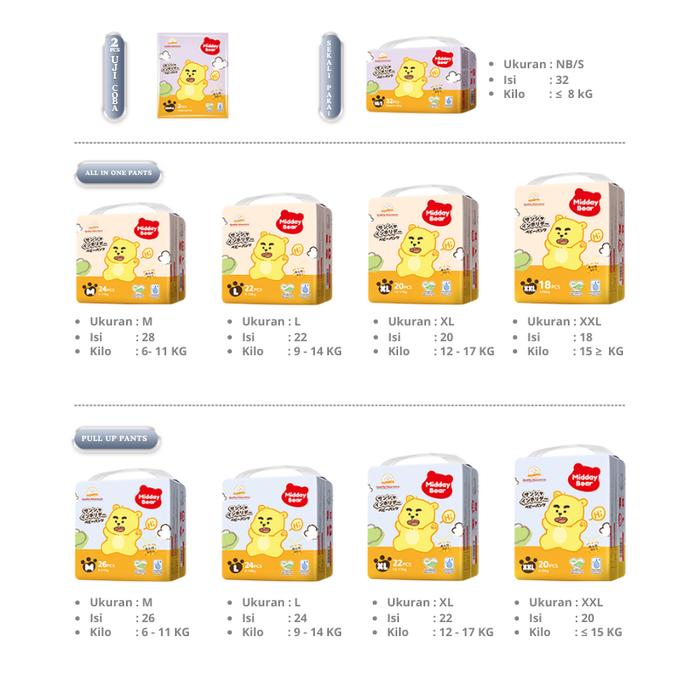 Midday Bear Holiday Popok Celana Bayi Pull-Up Pants Lembut,kering,Tipis XL-22*3Pcs