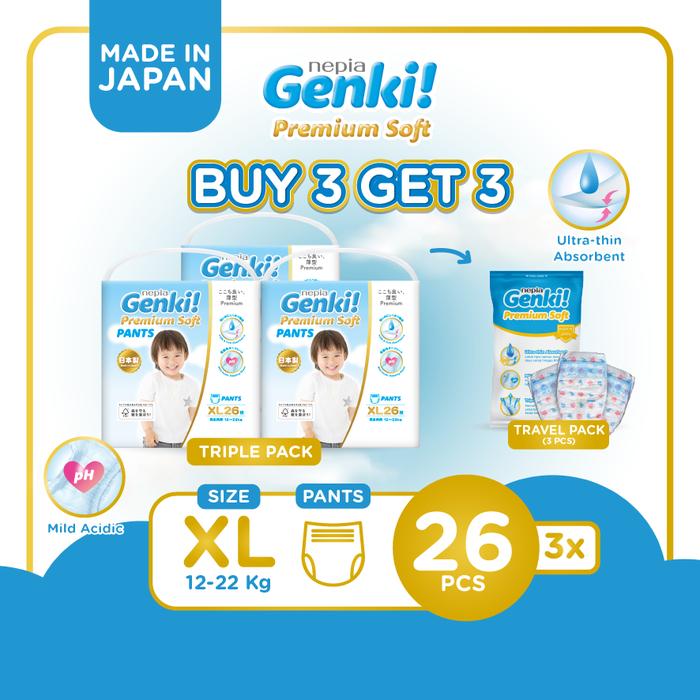 [3 Pack] Nepia Genki Popok Bayi Pants Popok Celana Bayi Diapers Premium Soft XL26 - Triple Pack