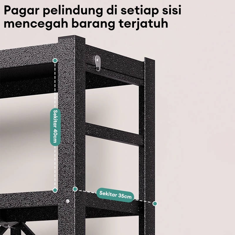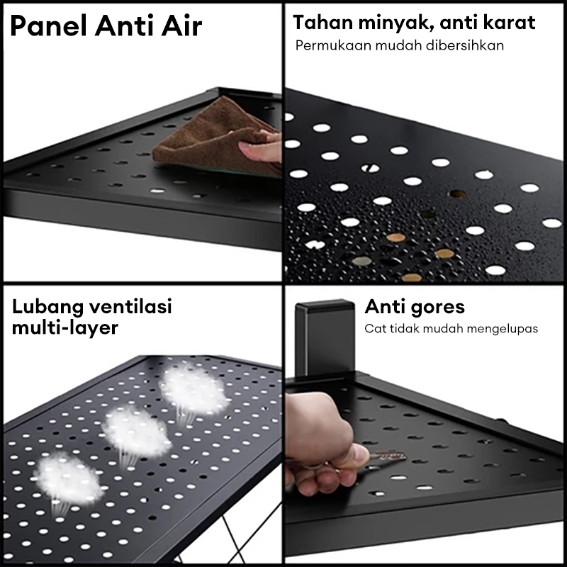 Plat Besi Menebal Rak Dapur Lipat Rak Lipat Portable Rak Besi 5 Susun Rak Dapur Serbaguna Roda Rak Penyimpanan
