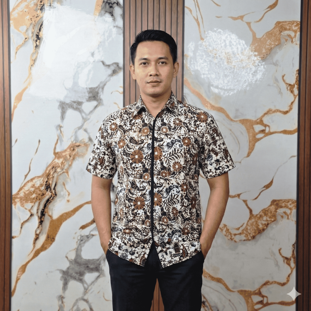 Kemeja Batik Cempaka Sogan Baju Batik Pria Motif Modern Lengan Pendek Slim Fit Premium