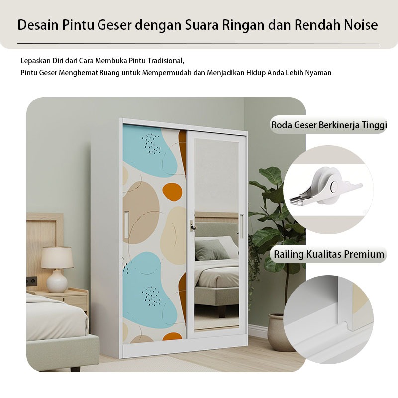 Lemari Baja 120cm 2 Pintu, Kunci Merah-Biru, Pintu Geser + Tiang Gantungan, Aman & Multifungsi