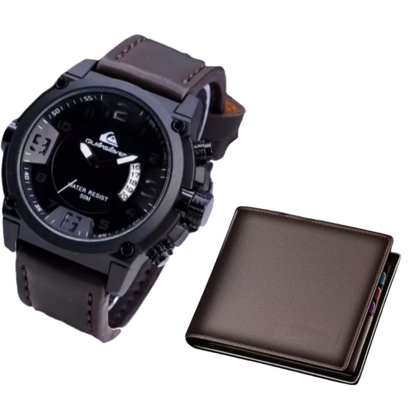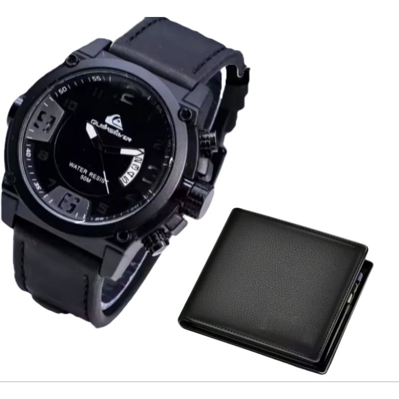 Terbaru..!!! Jam Tangan Pria Quiksilver Tanggal Bonus Dompet Kulit Dan Batrai Cadangan Jam Tangan Pria Tali Kulit Tampil