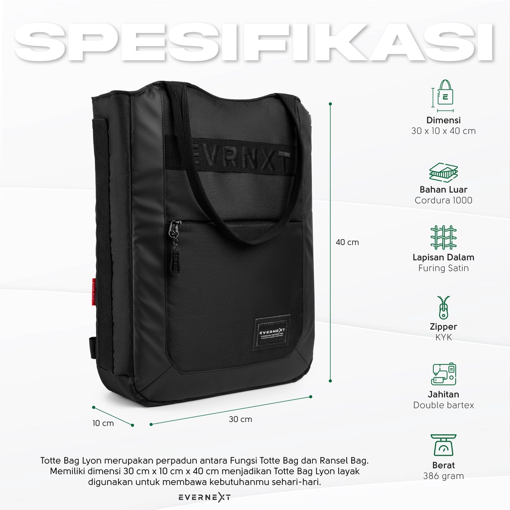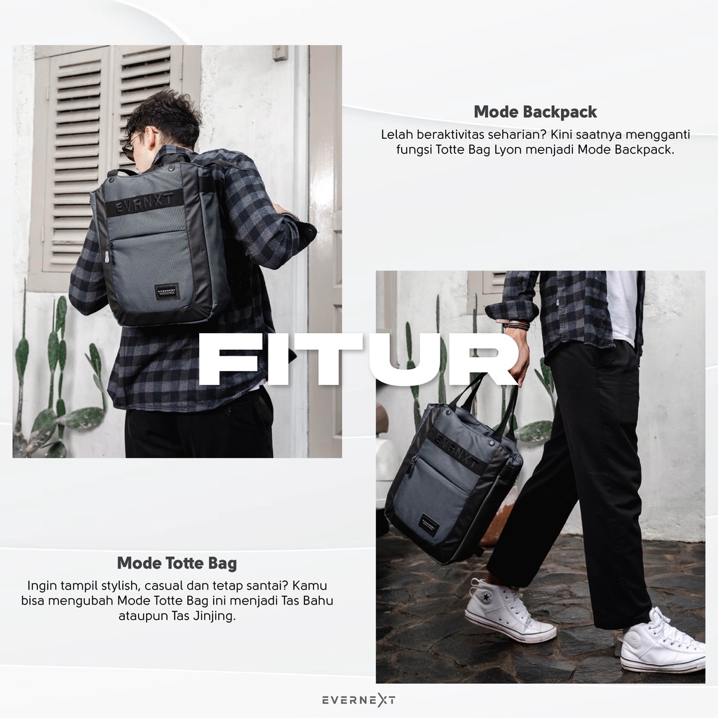 Evernext - Totte Bag Pria Tas Ransel Laptop Tas Jinjing Lyon Totte Bag Multifungsi Kuliah Kerja
