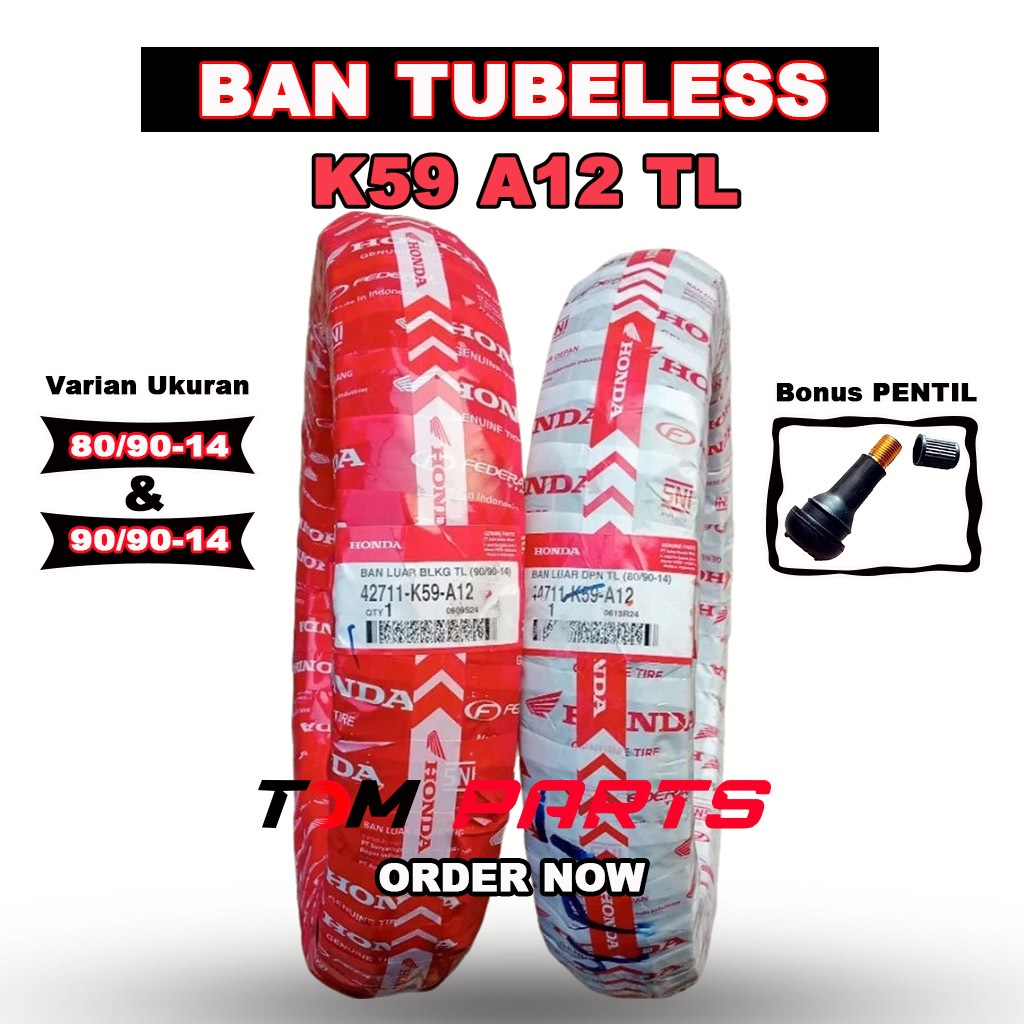 Ban Tubeless Beat Vario 80/90-14 & 90/90-14 Merk Honda / Federal AHM K59 A12 TL Original Free Pentil