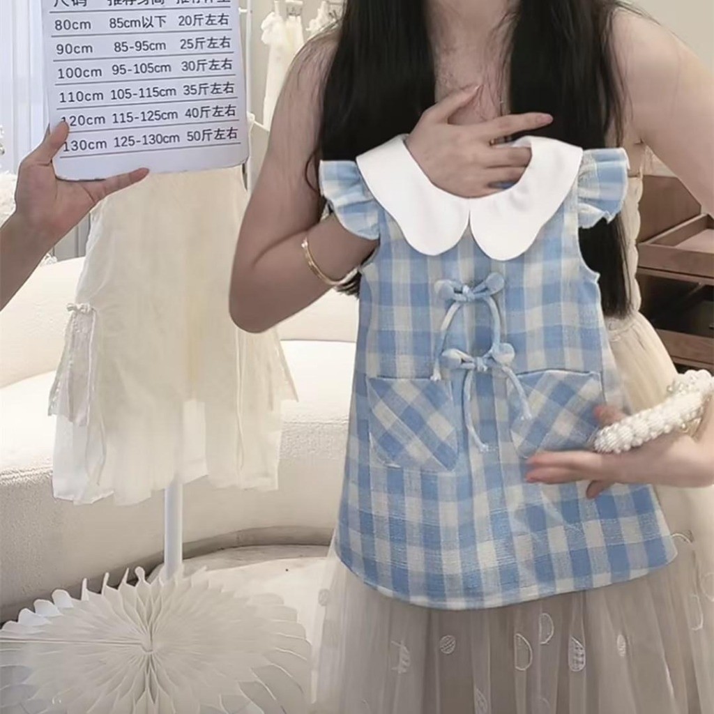 Haasya kids baju anak perempuan 1-5 tahun lengan pendek Rok set gaya Inggris baju setelan anak perempuan set anak cewek