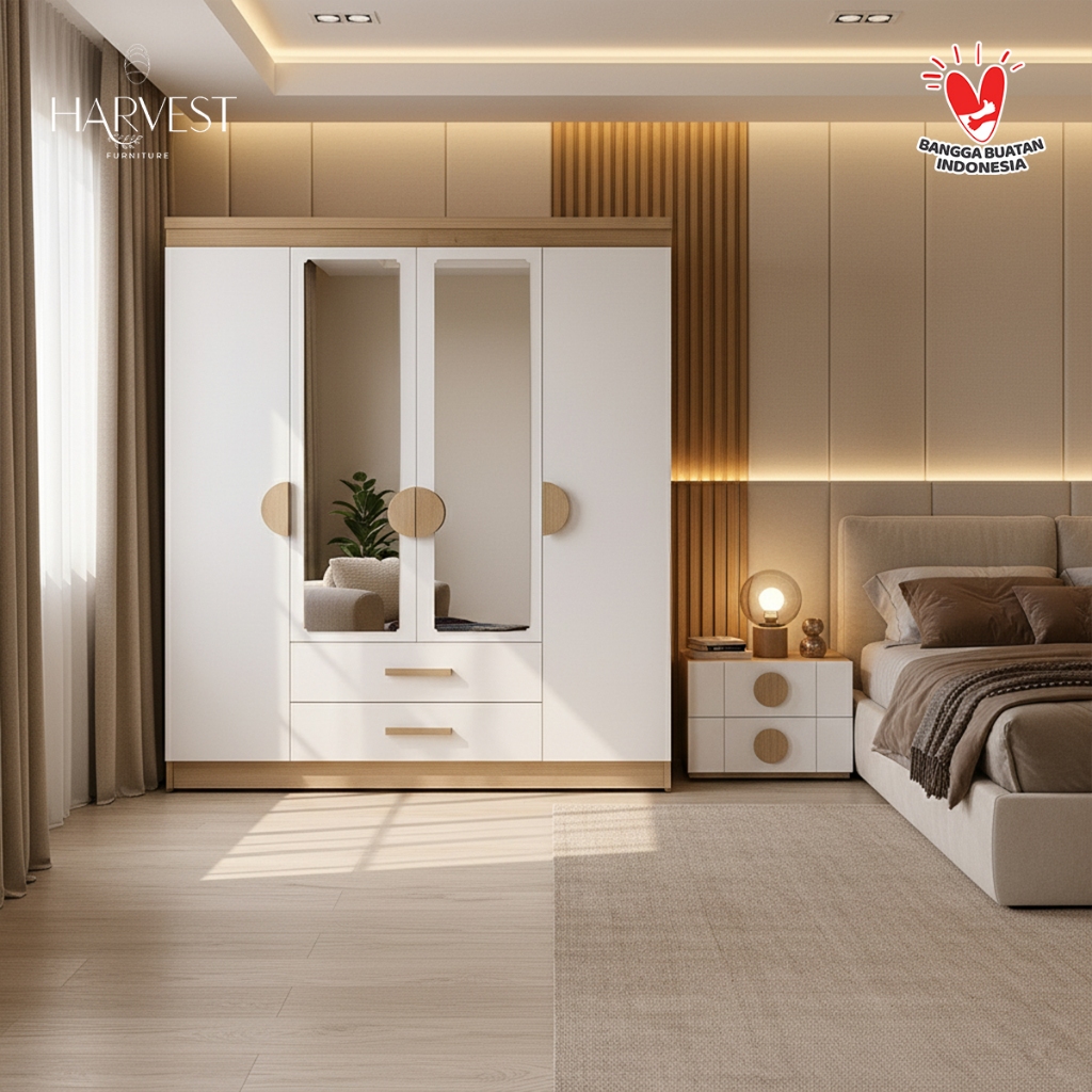 Harvest Furniture Lemari Pakaian Baju 4 Pintu Murah Modern Minimalis