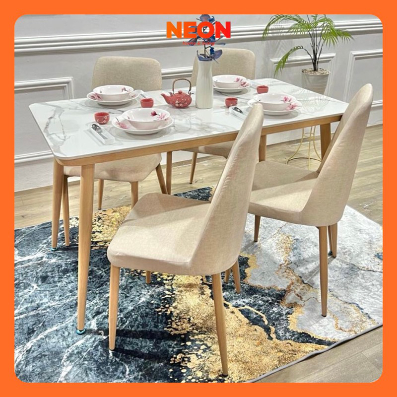 Meja Makan Geisha | Set Meja Makan Marmer 4 Kursi Rangka Besi Kokoh Minimalis Murah | Dining Table