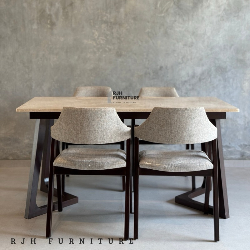DINING SET K4 MARMER, MEJA MAKAN MINIMALIS, DINING SET KAYU JATI, MEJA MAKAN JATI, KURSI MAKAN K4 JATI