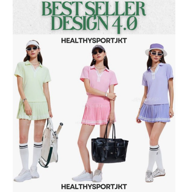 HEALTHYSPORTJKT - READY STOCK S-XL POLO SHIRT + SKORT OLAHRAGA TENNIS WANITA UNTUK TENNIS PADEL GYM DLL.
