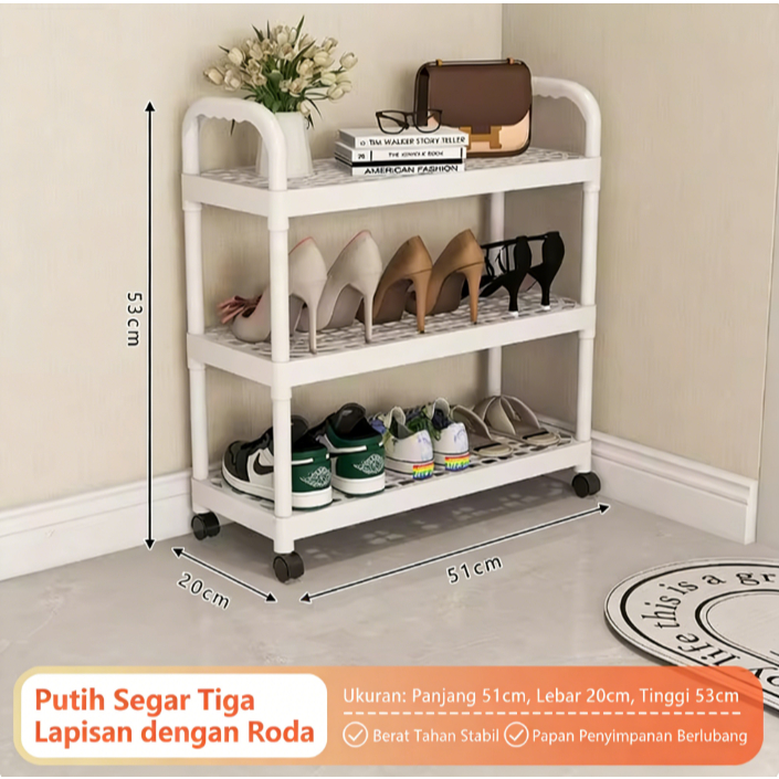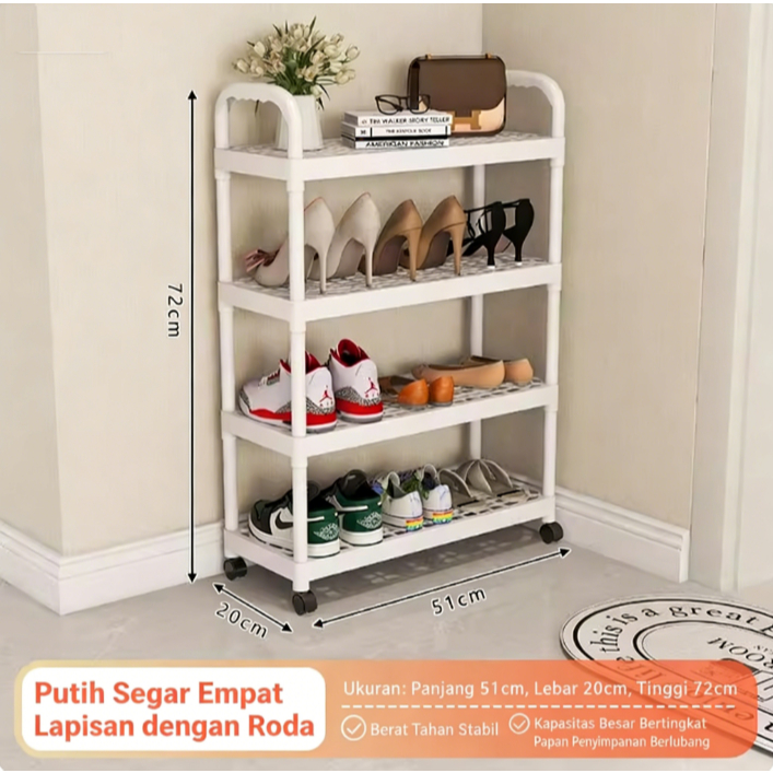 Rak Sepatu Multifungsi Rak Dorong - Rak Penyimpanan Stylish Plastic Kokoh Premium - FR-004-W