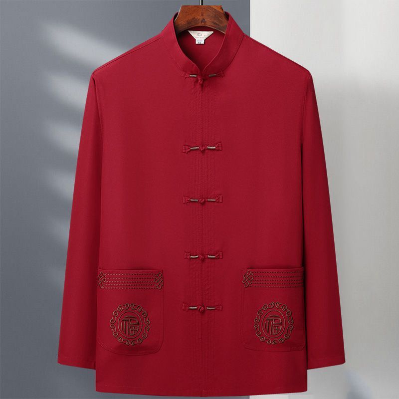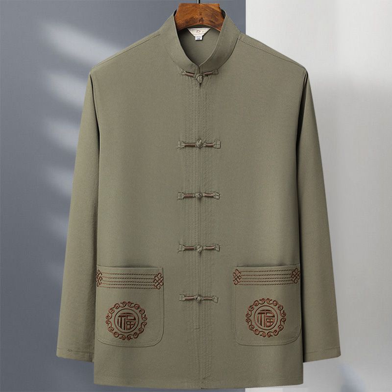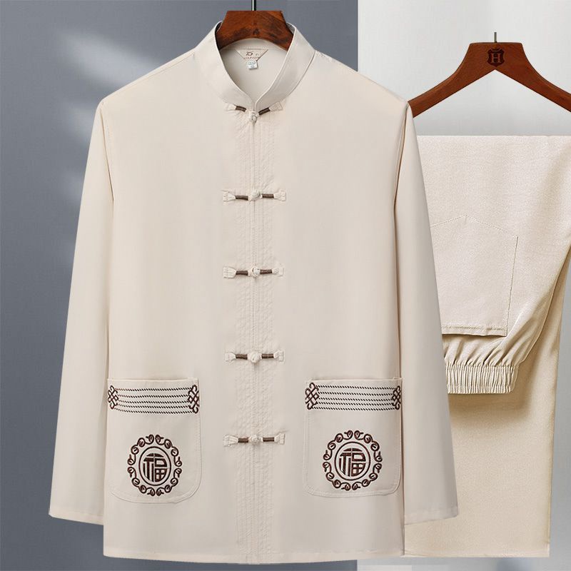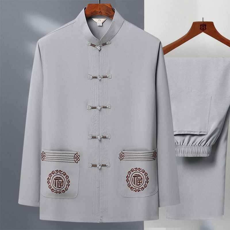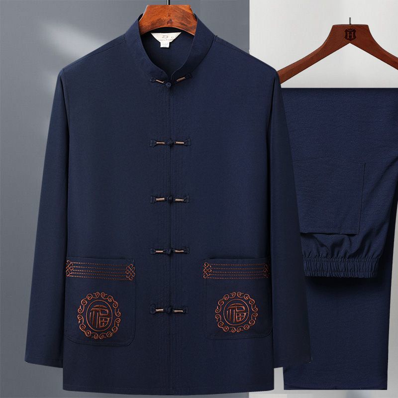 Tang Suit Pria usia tengah dan Elderly Dad Suit Spring and Autumn Long Sleeve Two Piece Tai Chi Suit Kakek China Hanfu