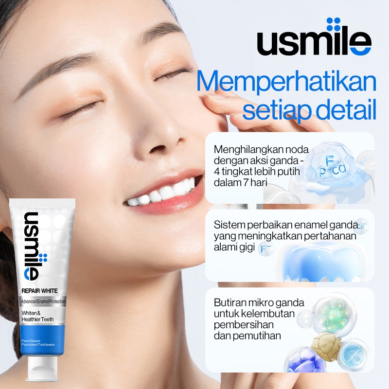 [New Launch] usmile Pasta Gigi Repair White 100gr - Whitening Toothpaste & Perbaikan Enamel Napas Segar Tahan Lama