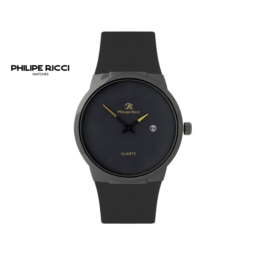 PhiLipe Ricci Jam Tangan Pria Karet Hitam Simple Terbaru Ori Tipis Keren 7553 Men Watches Free Box