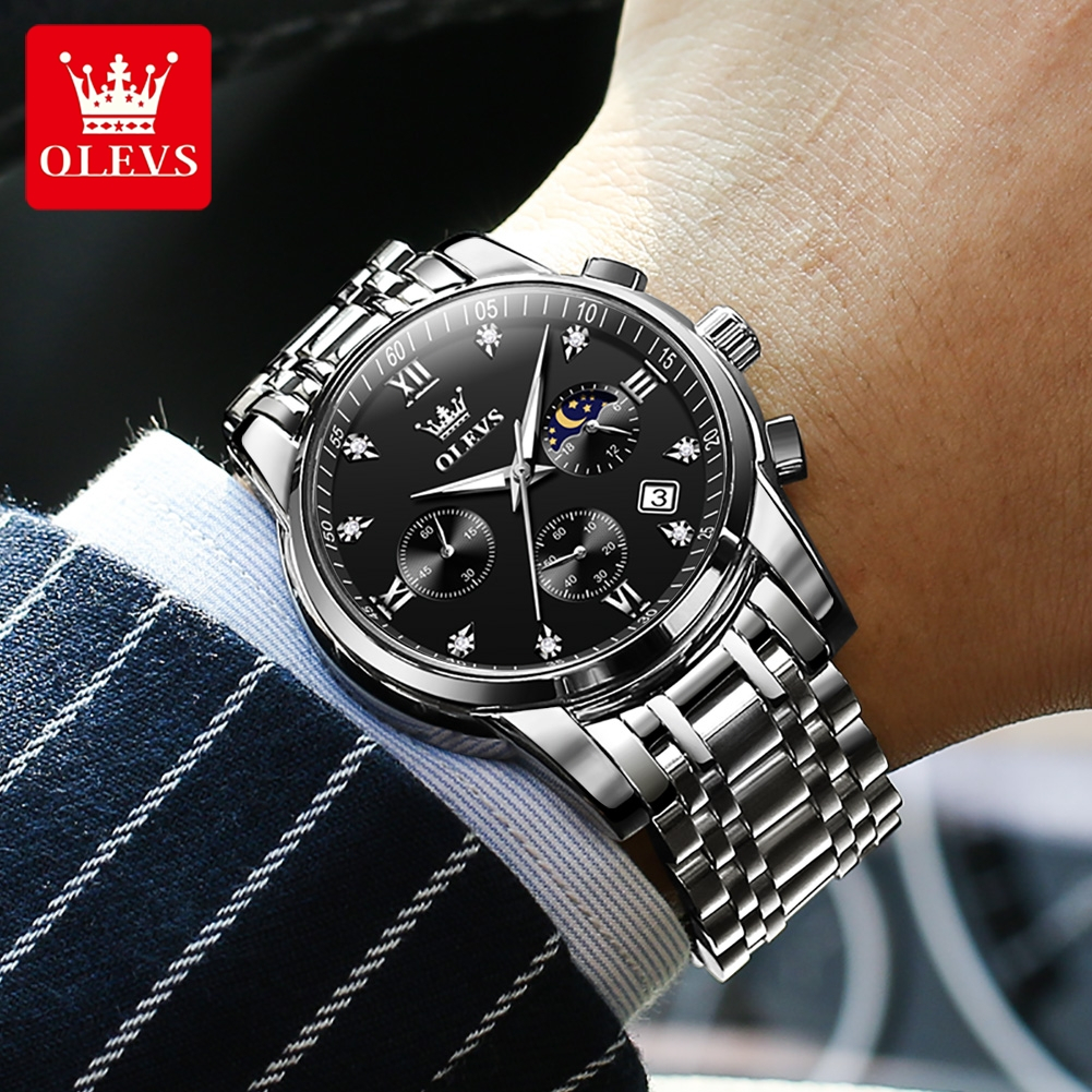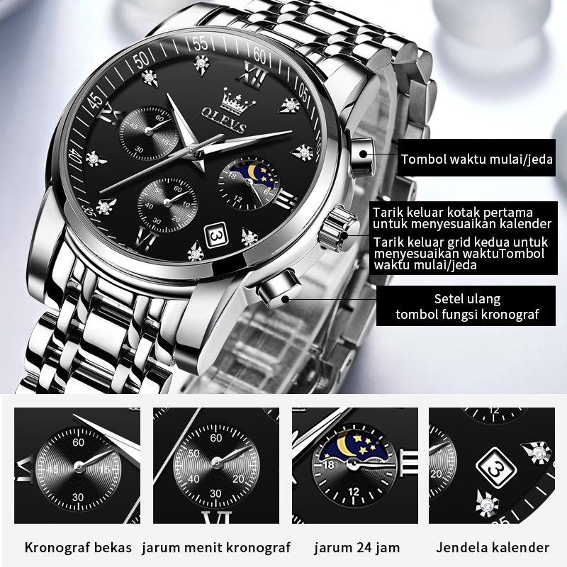OLEVS Jam Tangan Pria Anti Air Original Stainless Steel Terbaru Mewah 2026 Chronograph Multifungsi Watch Men 2858