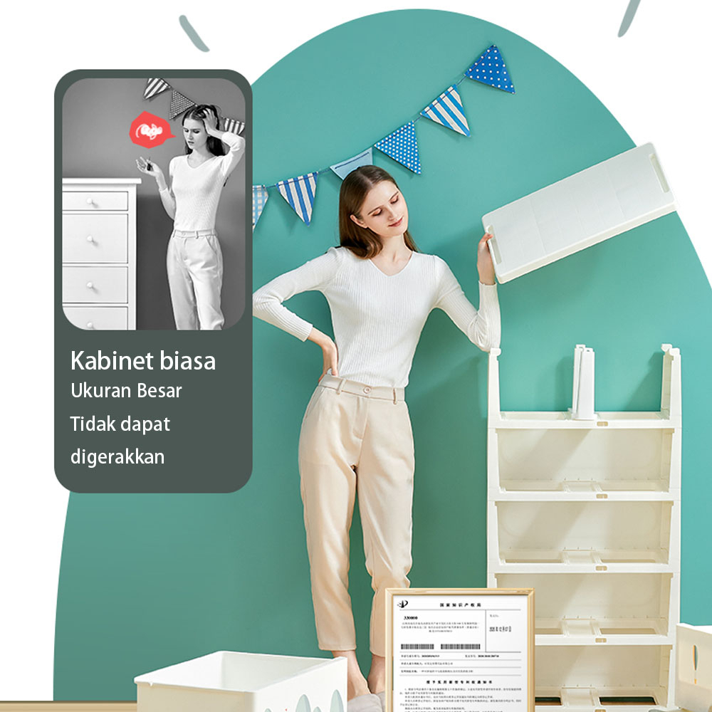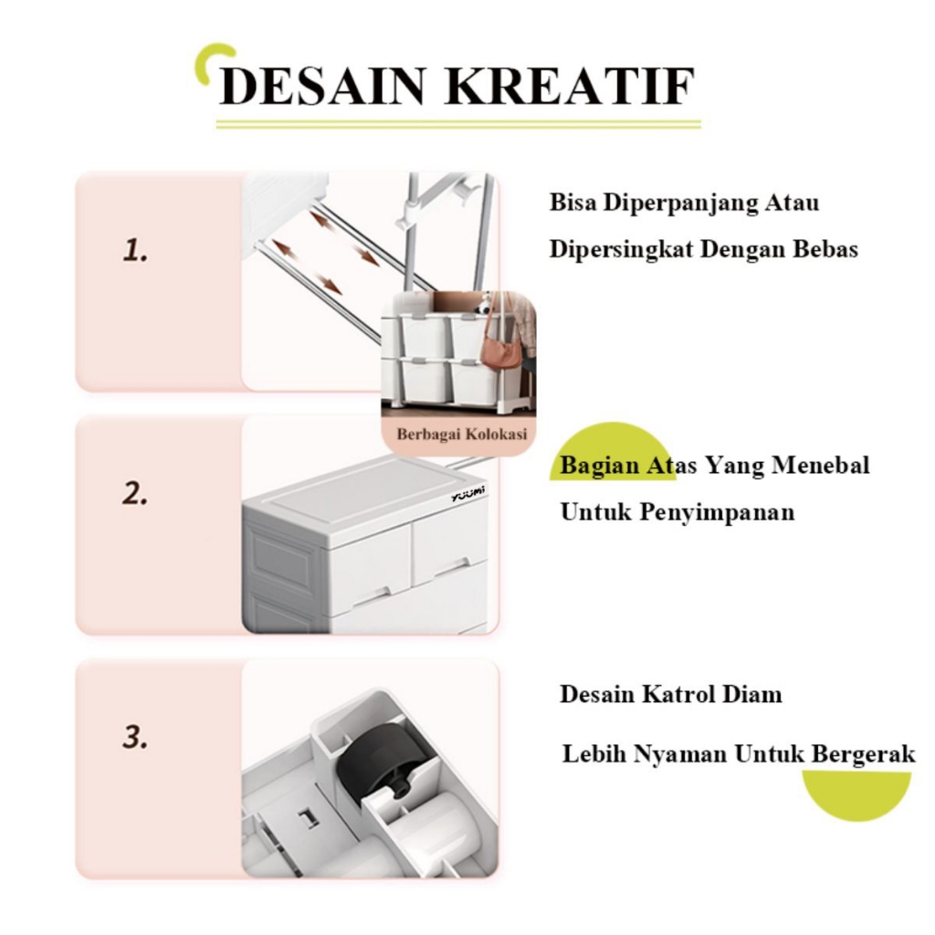 Yuumi Gantungan Teleskopik Jumbo - Lemari Plastik Anak, Lemari Pakaian Susun, Lemari Laci Bayi Estetik, Lemari Baju Multifungsi