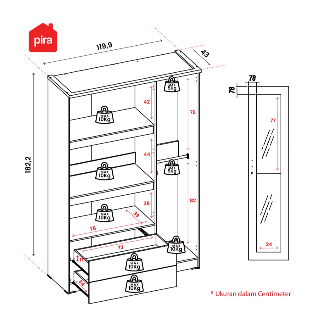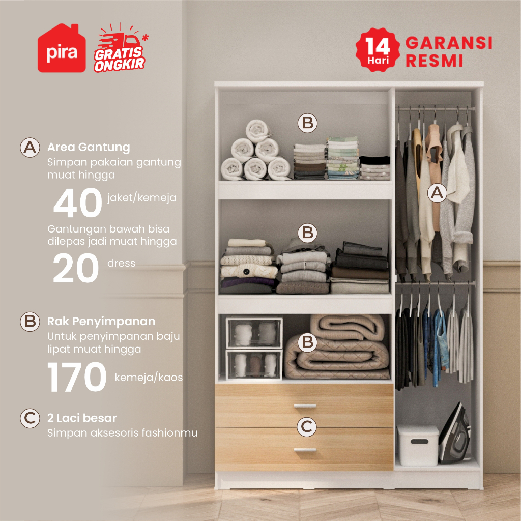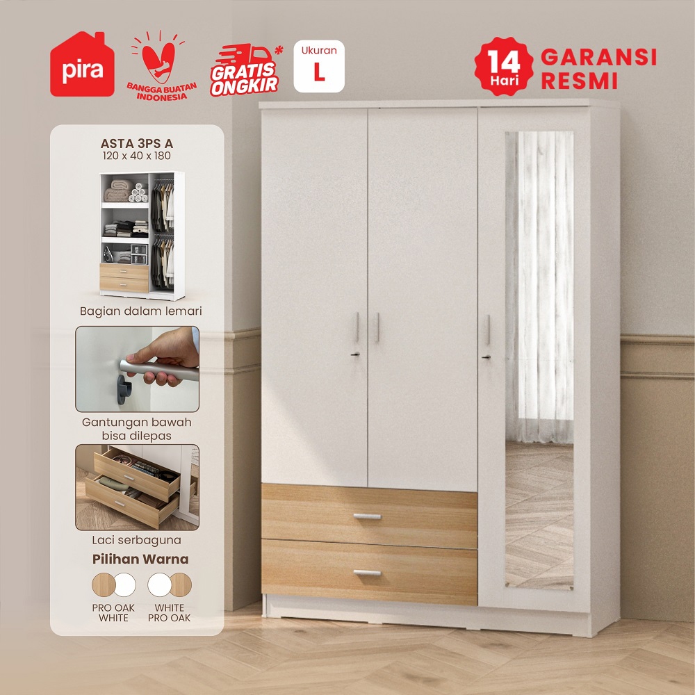PIRA METROPOLIS OX - ASTA 3PS A Lemari Pakaian 3 Pintu dengan 2 Laci / Lemari Baju