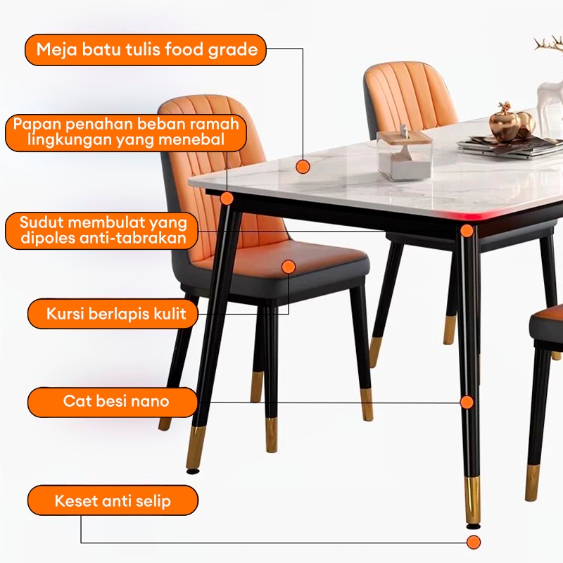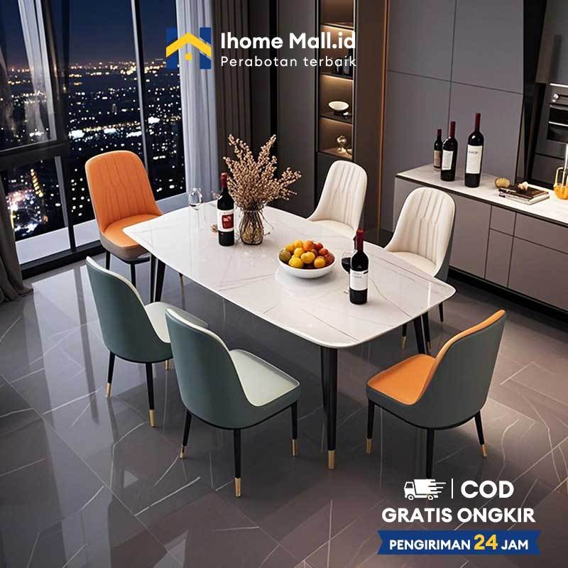 IH Meja Makan Kayu Meja Makan Aesthetic Dengan Sticker Marmer Meja Makan Minimalis Meja Makan Murah