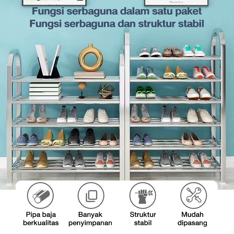 Rak Sepatu Stainless Steel Rak Sandal 2/3/4/5/6 Susun Serbaguna Rak Multifungsi Anti Karat Kuat