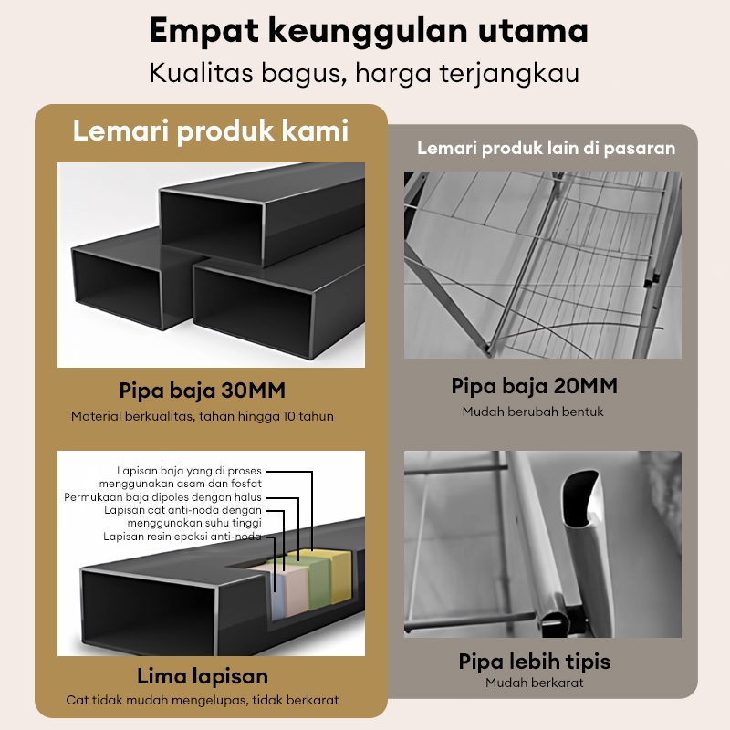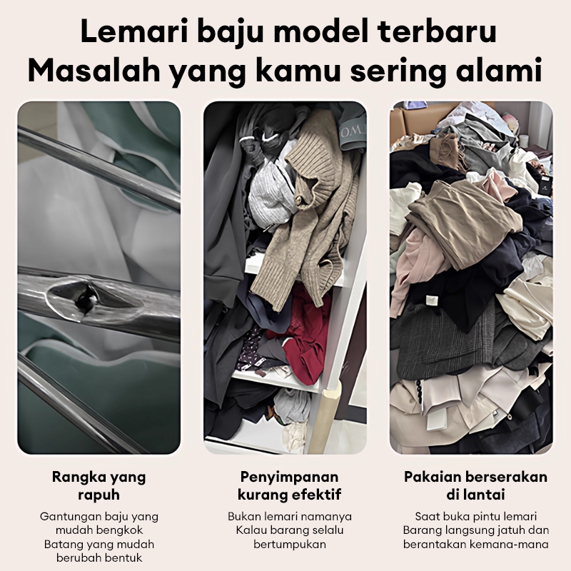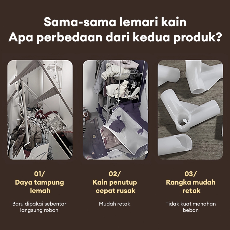 Lemari Baju Besar baja Tidak Perlu Instalasi Lemari Pakaian Penyimpanan Lipat Serbaguna Lemari Kain Portable