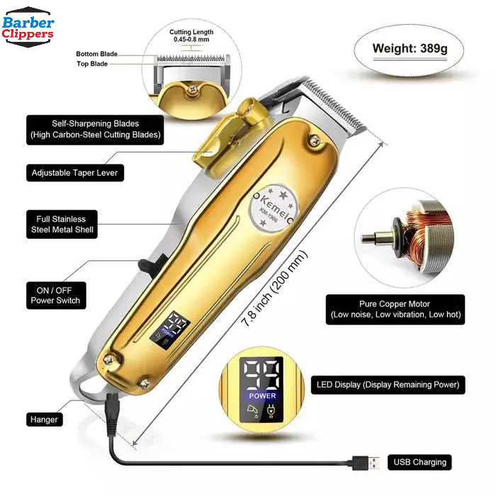 HomePerawatan TubuhGroomingAlat Cukur ElektrikKEMEI KM-1986 USB 7000RPM 2500MAH Electric Hair Clipper Cukur Rambut KM198
