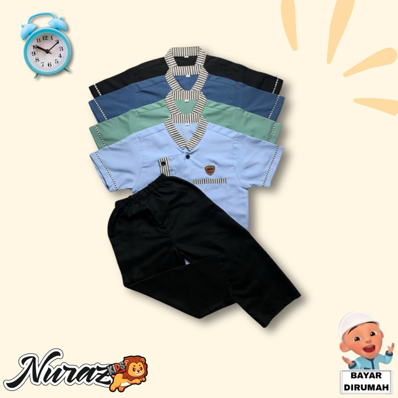 NURAZ KIDS kemeja koko premium lengan pendek anak laki-laki Muslim 1-10 TAHUN Kerah Mandarin ||