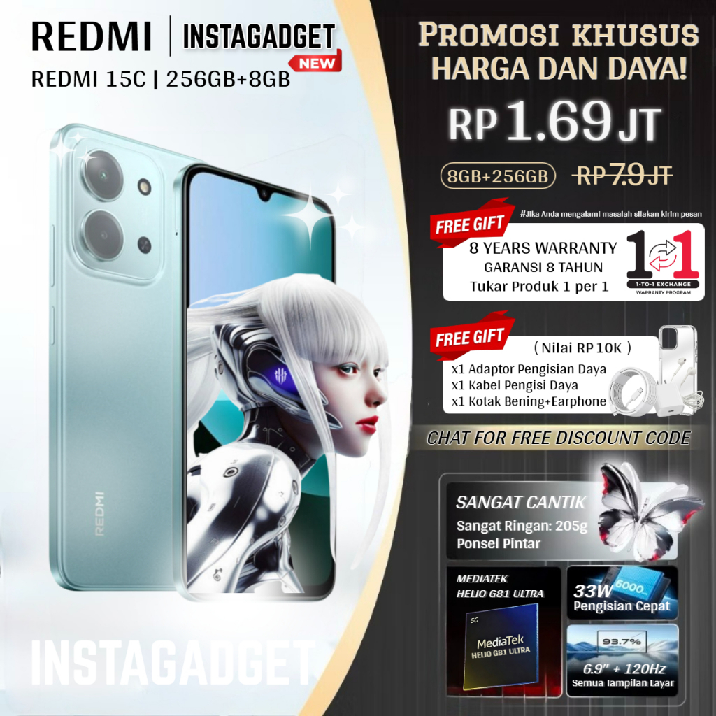 Xiaomi Redmi 15C (8Gb/256Gb) Baterai 6000Mah | Hadiah | Layar 6,9" 120Hz | Kamera Ganda Ai 50Mp