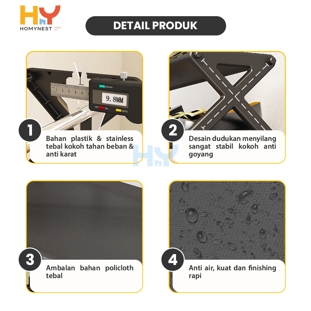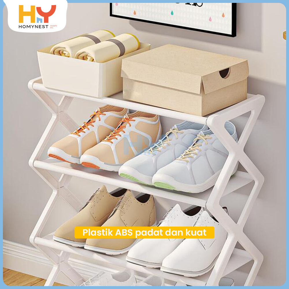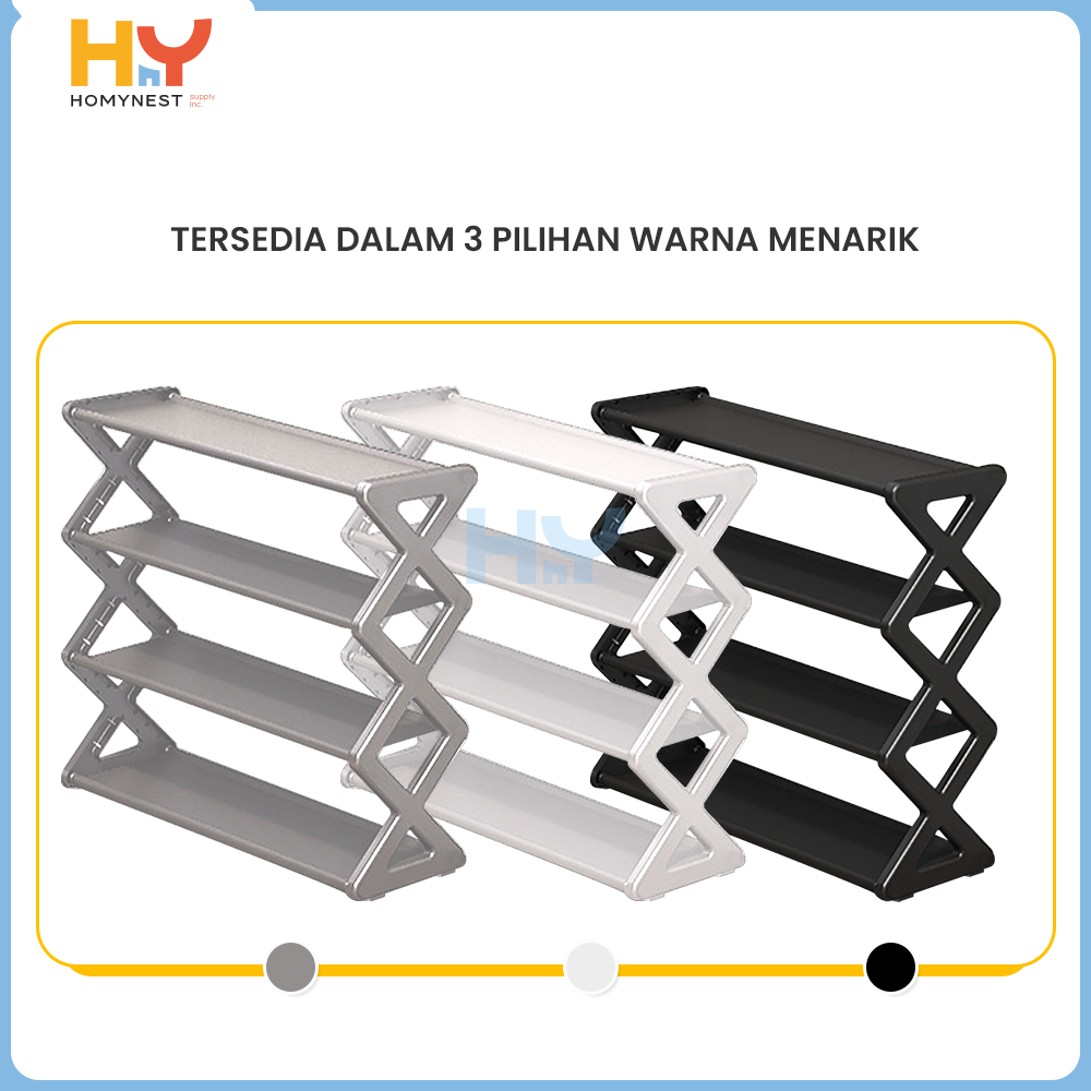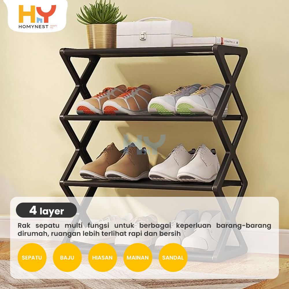 HOMYNEST Rak Sepatu Portable Tempat Penyimpanan Sepatu Sandal Serbaguna 4 Susun