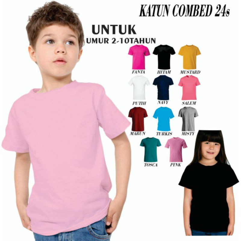 KAOS OBLONG ANAK ANAK UNISEX COTTON COMBED TSHIRT POLOS UMUR 2-10 TAHUN