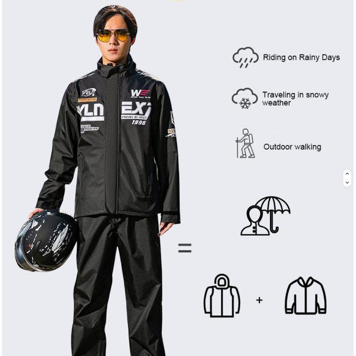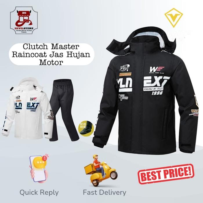 CLUTCH MASTERS WATERPROOF RAINWEAR MOTORCYCLE RAIN COAT WITH COVER JAS HUJAN PEMOTOR BAJU HUJAN JAKET MOTOR - BLACK, S