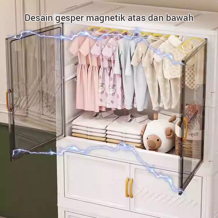 GiantMeng - Lemari Pakaian Lipat 60cm Multifungsi Kapasitas Super Besar Storage Tutup Magnetik