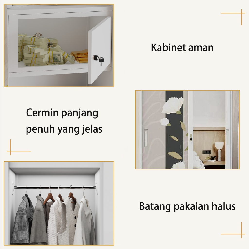 Lemari Pakaian Besi Pintu Lemari Pakaian Logam Kabinet Atas Dengan Cermin Panjang Penuh Antri Rayap 12050185cm
