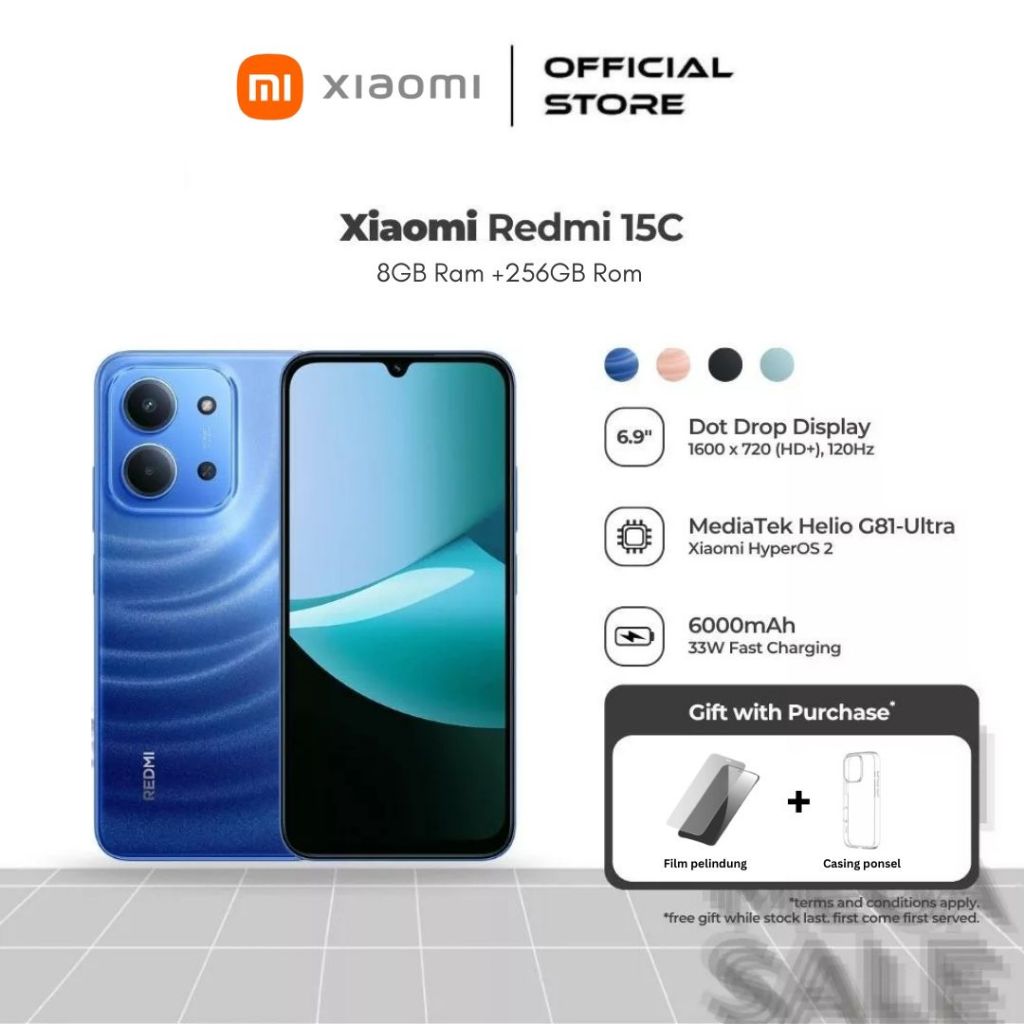 Redmi 15C (8Gb/256Gb) | Baterai Besar 6000Mah Dengan Pengisisan Daya 33W | Desain Ramping Dan Elegan |