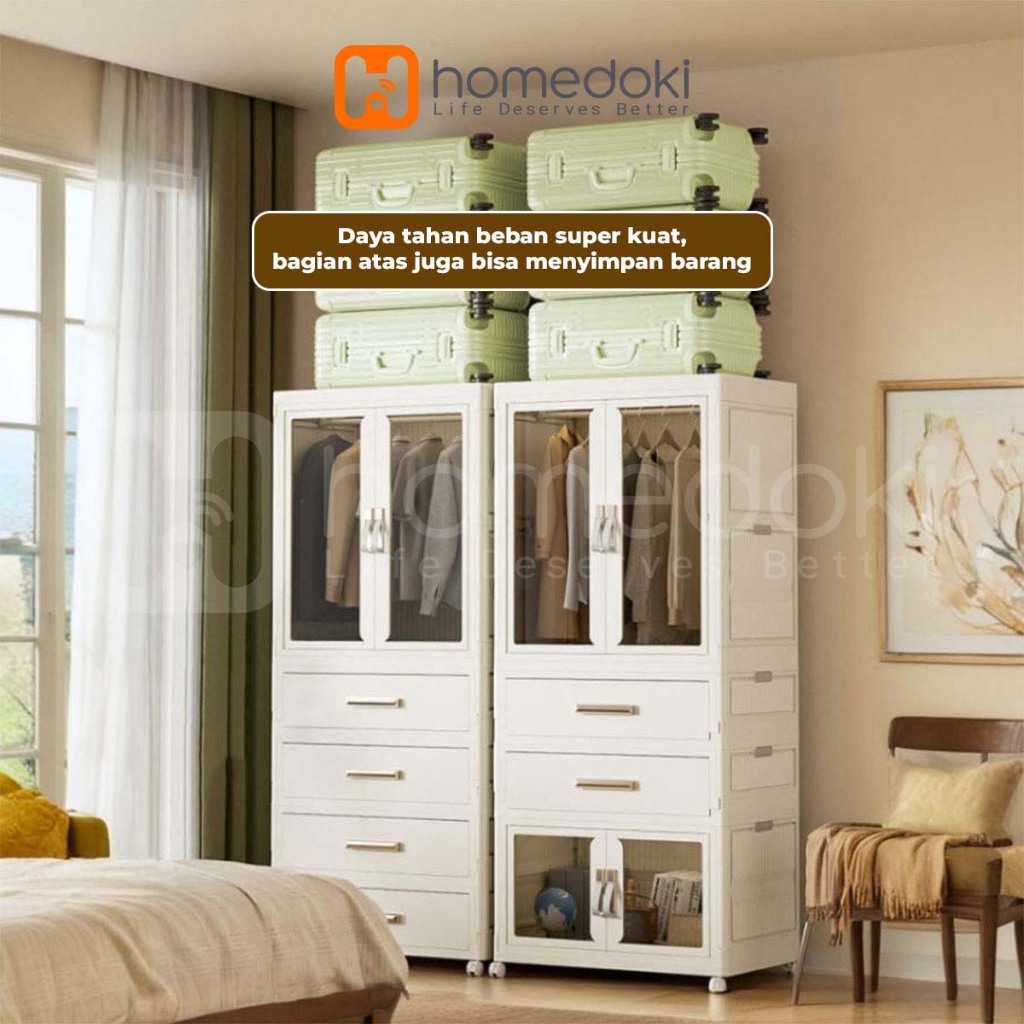 Homedoki Lemari Plastik/Lemari Plastik Susun/Lemari Baju Aesthetic/Lemari Pakaian/Lemari Pakaian Plastik Aesthetic